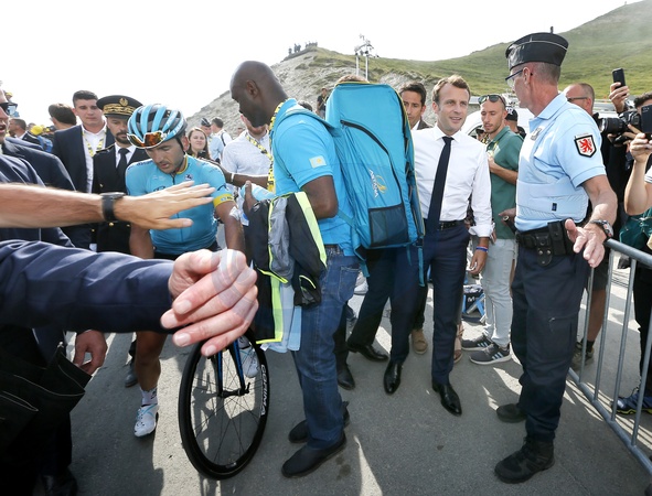 Emmanuel Macron w Tourmalet podczas Tour de France 2019