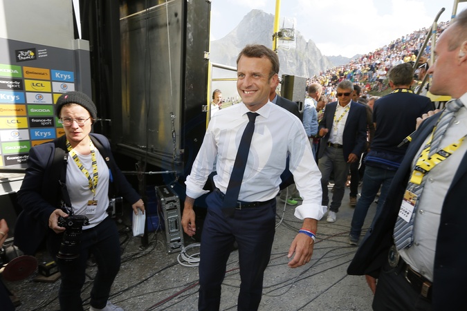 Emmanuel Macron w Tourmalet podczas Tour de France 2019