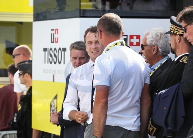 Emmanuel Macron w Tourmalet podczas Tour de France 2019