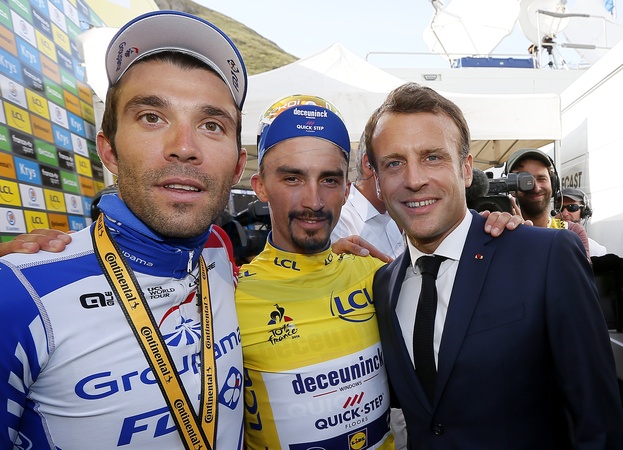 Emmanuel Macron w Tourmalet podczas Tour de France 2019