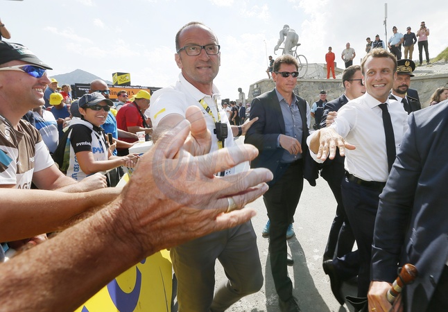 Emmanuel Macron w Tourmalet podczas Tour de France 2019