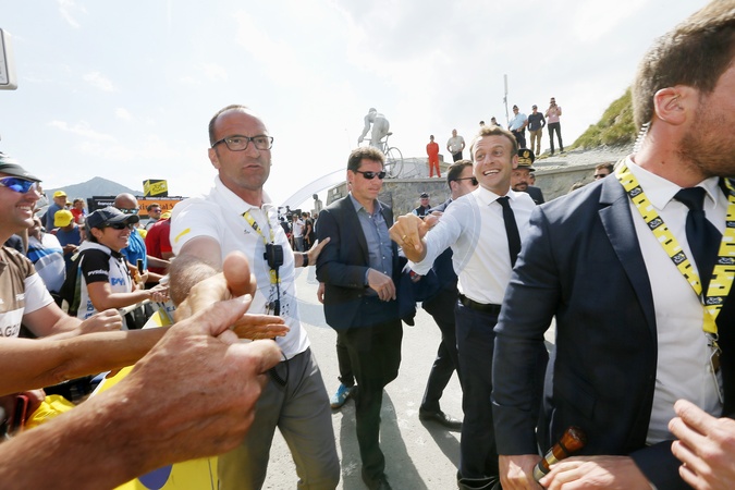 Emmanuel Macron w Tourmalet podczas Tour de France 2019