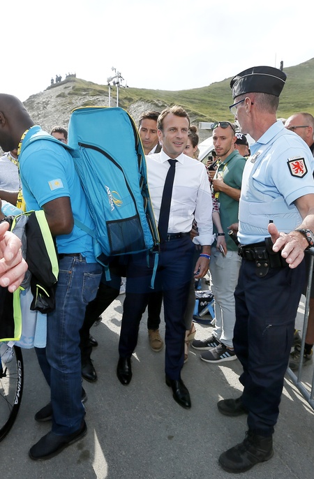 Emmanuel Macron w Tourmalet podczas Tour de France 2019