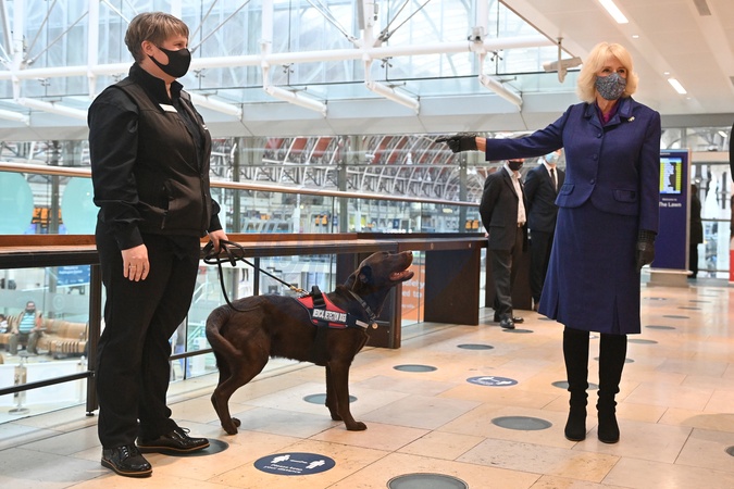 Ksiezna Camilla na pokazie Medical Detection Dogs, organizacji ktora szkoli psy do wykrywania zapachu ludzkiej choroby