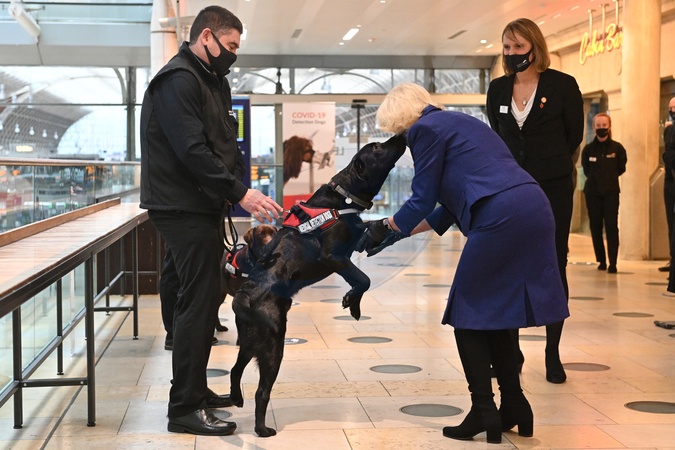 Ksiezna Camilla na pokazie Medical Detection Dogs, organizacji ktora szkoli psy do wykrywania zapachu ludzkiej choroby