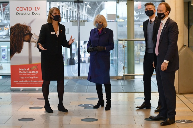 Ksiezna Camilla na pokazie Medical Detection Dogs, organizacji ktora szkoli psy do wykrywania zapachu ludzkiej choroby