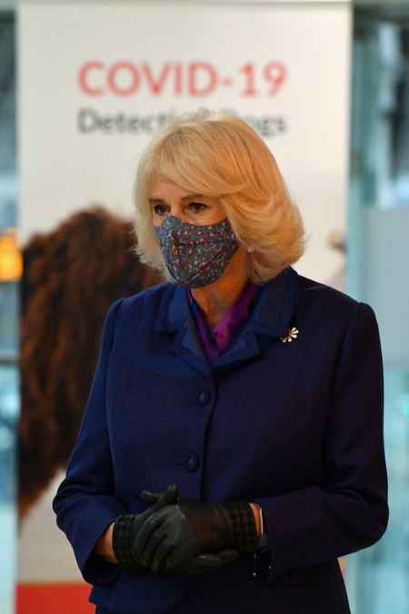 Ksiezna Camilla na pokazie Medical Detection Dogs, organizacji ktora szkoli psy do wykrywania zapachu ludzkiej choroby