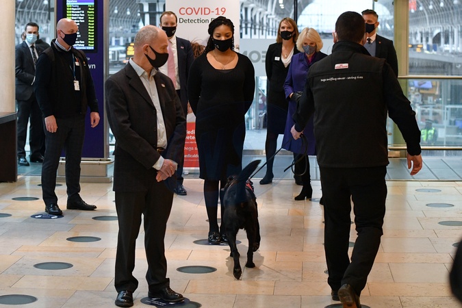 Ksiezna Camilla na pokazie Medical Detection Dogs, organizacji ktora szkoli psy do wykrywania zapachu ludzkiej choroby