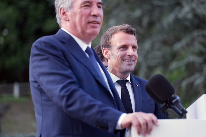 Macron pozuje do zdjec na ceremonii 100-lecia zoltej koszulki