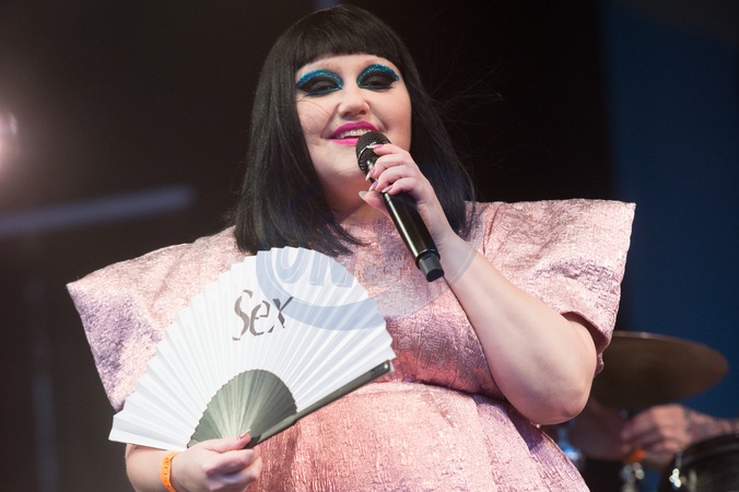 Beth Ditto z zespolem Gossip na scenie w Somerset House