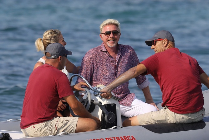 Boris Becker z przyciolka wraca z Club 55, Saint Tropez