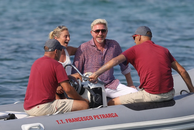 Boris Becker z przyciolka wraca z Club 55, Saint Tropez
