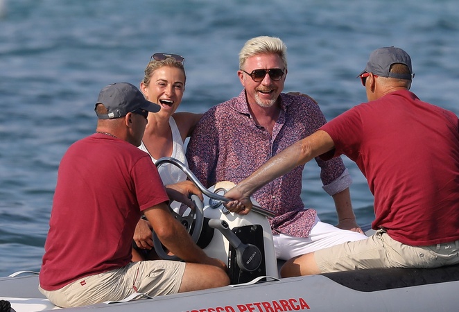 Boris Becker z przyciolka wraca z Club 55, Saint Tropez