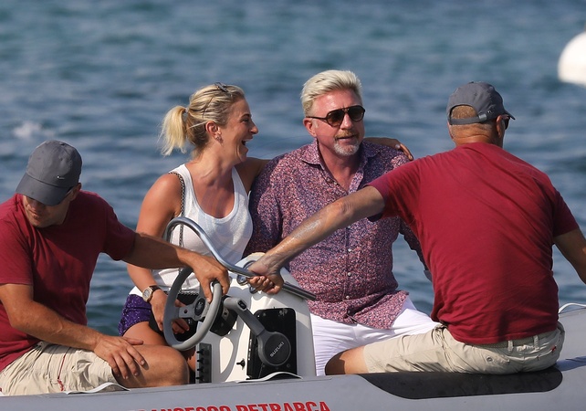 Boris Becker z przyciolka wraca z Club 55, Saint Tropez