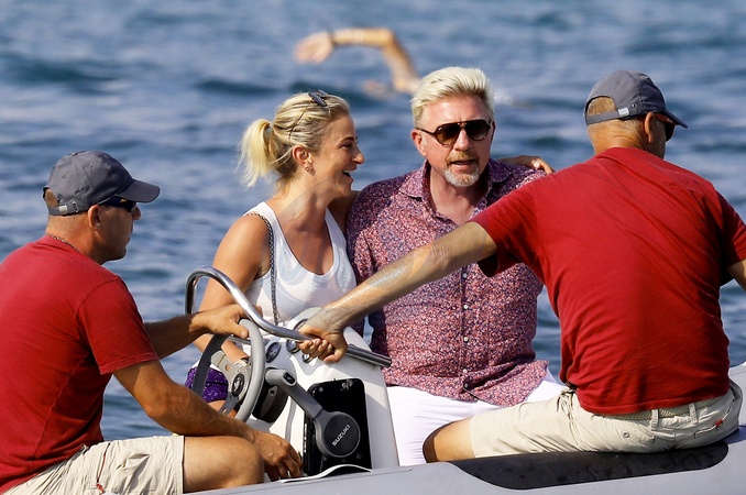 Boris Becker z przyciolka wraca z Club 55, Saint Tropez