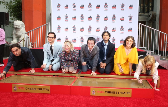 Obsada serialu Teoria wielkiego podrywu odcisneli dlonie w Chinese Theatre
