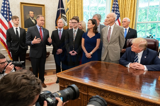 Jim Bridenstine, Michael Collins, Mike Pence, Donald Trump, rodzina Neil Armstrong.jpg