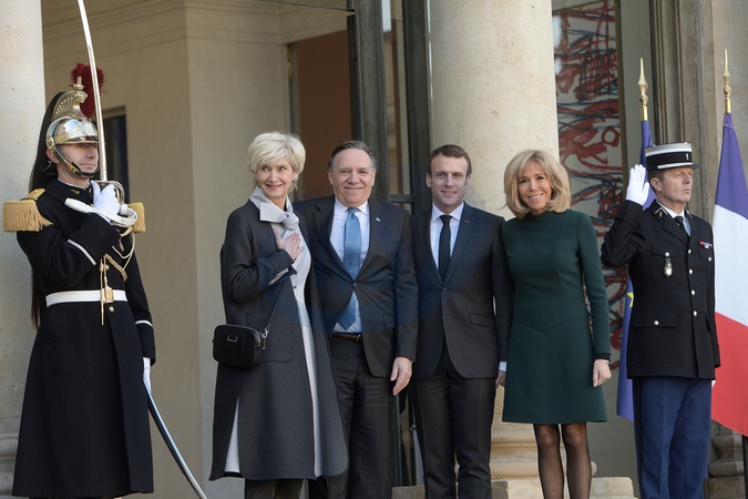 Emmanuel Macron, Brigitte Macron, Quebec Francois Legault, Isabelle Brais