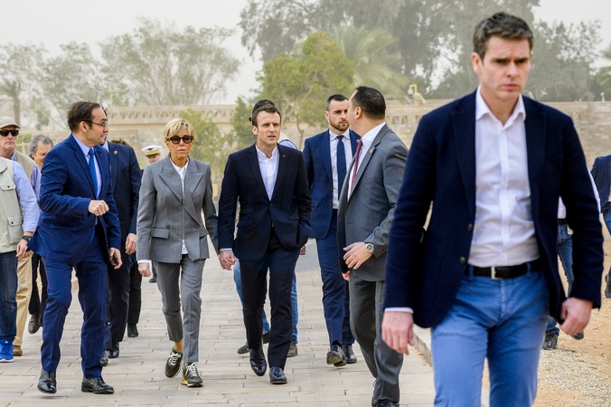 Macronowie w garniturach zwiedzaja Egipt