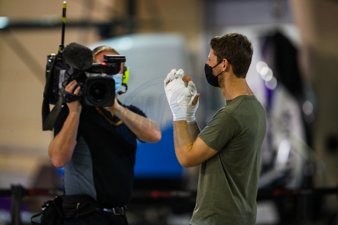 Romain Grosjean z zabandazowanymi rekoma