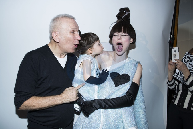 Jean Paul Gaultier pozuje z goscmi zaproszonymi na pokaz