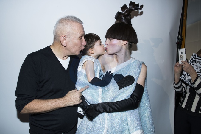 Jean Paul Gaultier pozuje z goscmi zaproszonymi na pokaz