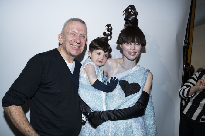 Jean Paul Gaultier pozuje z goscmi zaproszonymi na pokaz