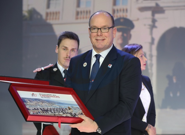 Monakijska rodzina ksiazeca na ceremonii 200. rocznicy Compagnie des Carabiniers