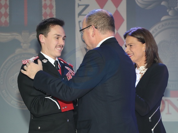 Monakijska rodzina ksiazeca na ceremonii 200. rocznicy Compagnie des Carabiniers