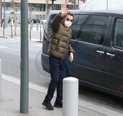 Jean-Michel Jarre w puchowej kurtce i maseczce