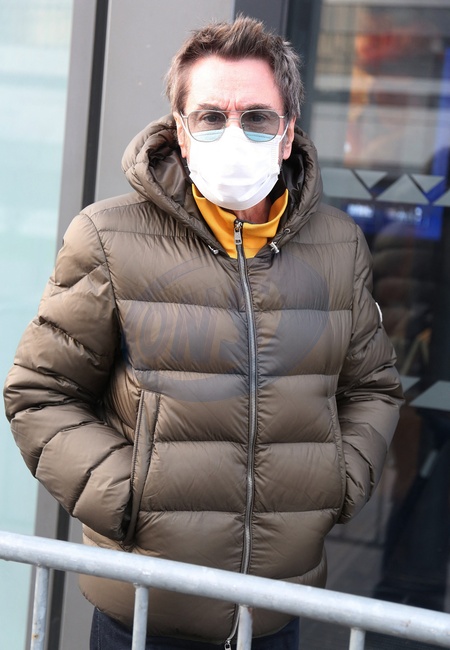 Jean-Michel Jarre w puchowej kurtce i maseczce
