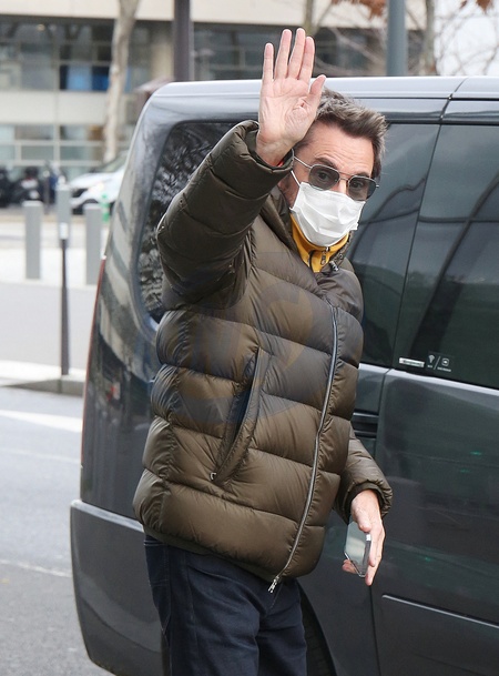 Jean-Michel Jarre w puchowej kurtce i maseczce