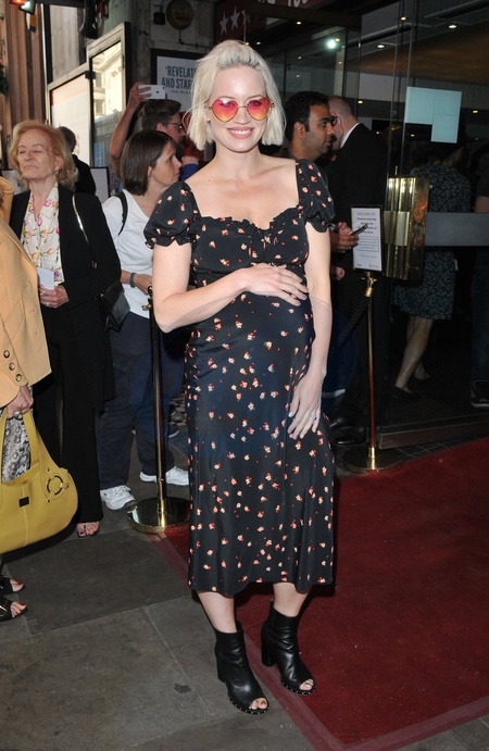 Kimberly Wyatt z brzuszkiem i Max Rogers w drodze na Equus play press night