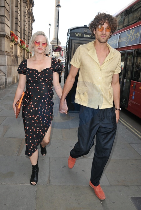 Kimberly Wyatt z brzuszkiem i Max Rogers w drodze na Equus play press night