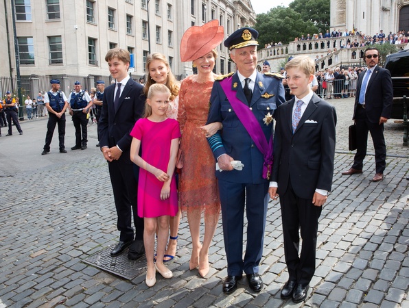 Belgijska rodzina krolewska podczas ceremonii Te Deum w Katedrze Swietych Michala i Guduli w Brukseli