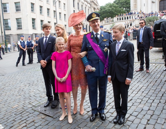 Belgijska rodzina krolewska podczas ceremonii Te Deum w Katedrze Swietych Michala i Guduli w Brukseli