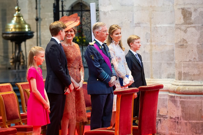 Belgijska rodzina krolewska podczas ceremonii Te Deum w Katedrze Swietych Michala i Guduli w Brukseli