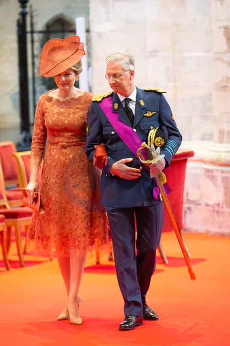 Belgijska rodzina krolewska podczas ceremonii Te Deum w Katedrze Swietych Michala i Guduli w Brukseli