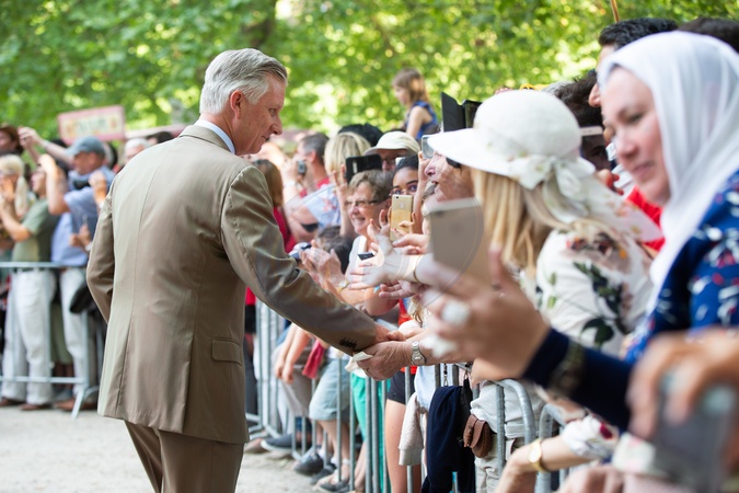 Matylda i Filip podczas wizyty w Parku Krolewskim podczas obchodow Belgijskiego Dnia Narodowego