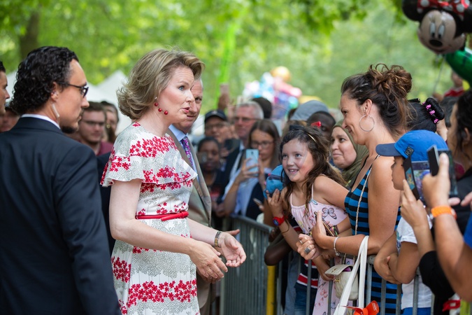 Matylda i Filip podczas wizyty w Parku Krolewskim podczas obchodow Belgijskiego Dnia Narodowego