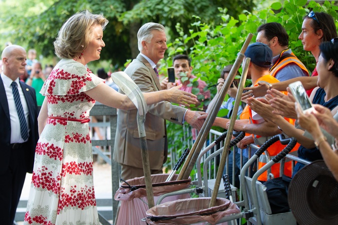 Matylda i Filip podczas wizyty w Parku Krolewskim podczas obchodow Belgijskiego Dnia Narodowego