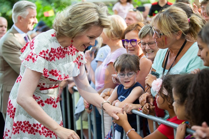 Matylda i Filip podczas wizyty w Parku Krolewskim podczas obchodow Belgijskiego Dnia Narodowego