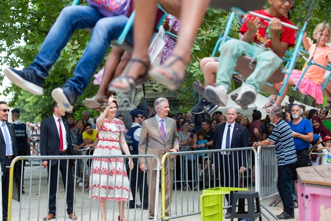 Matylda i Filip podczas wizyty w Parku Krolewskim podczas obchodow Belgijskiego Dnia Narodowego
