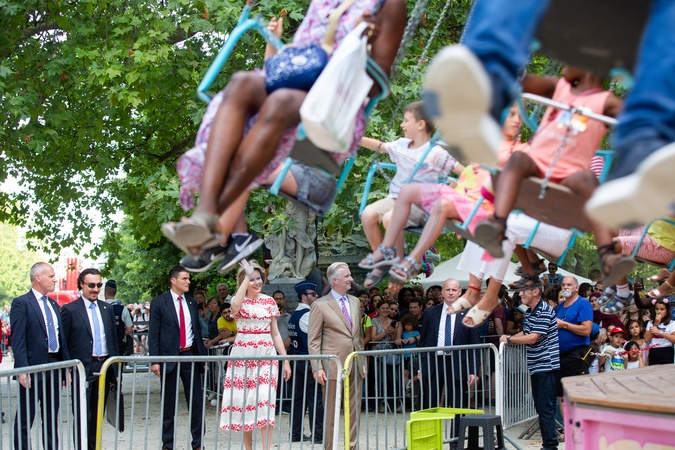 Matylda i Filip podczas wizyty w Parku Krolewskim podczas obchodow Belgijskiego Dnia Narodowego