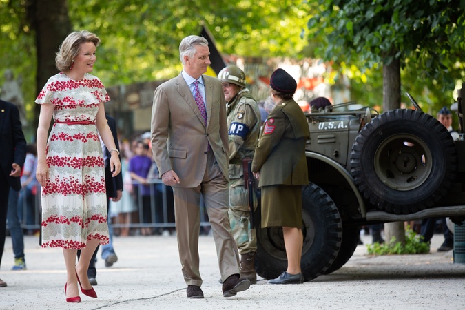 Matylda i Filip podczas wizyty w Parku Krolewskim podczas obchodow Belgijskiego Dnia Narodowego