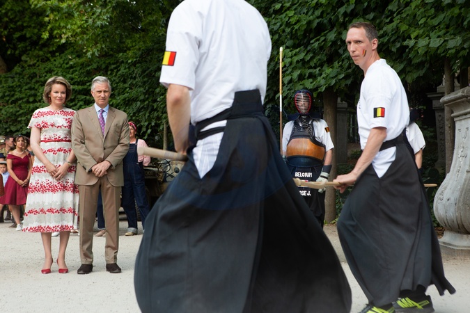 Matylda i Filip podczas wizyty w Parku Krolewskim podczas obchodow Belgijskiego Dnia Narodowego