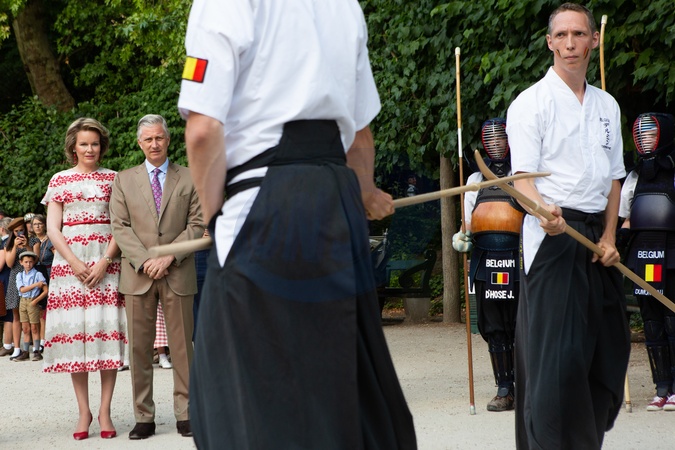 Matylda i Filip podczas wizyty w Parku Krolewskim podczas obchodow Belgijskiego Dnia Narodowego
