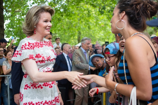 Matylda i Filip podczas wizyty w Parku Krolewskim podczas obchodow Belgijskiego Dnia Narodowego