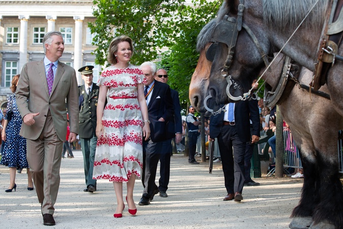 Matylda i Filip podczas wizyty w Parku Krolewskim podczas obchodow Belgijskiego Dnia Narodowego