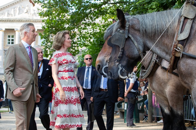 Matylda i Filip podczas wizyty w Parku Krolewskim podczas obchodow Belgijskiego Dnia Narodowego